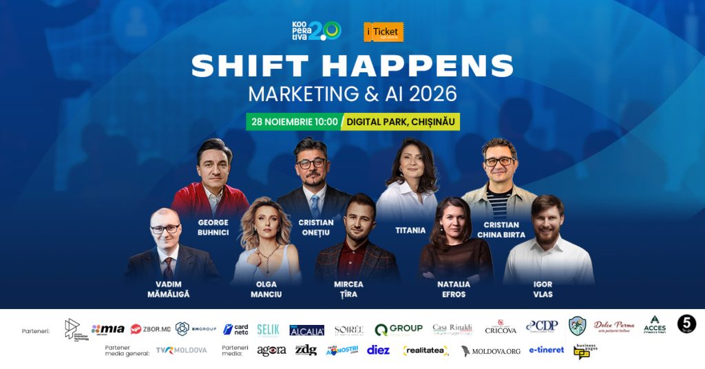 Au mai rămas doar patru zile până la conferința SHIFT HAPPENS by Kooperativa, care va avea loc pe 28 noiembrie 2025, la Digital Park Chișinău.