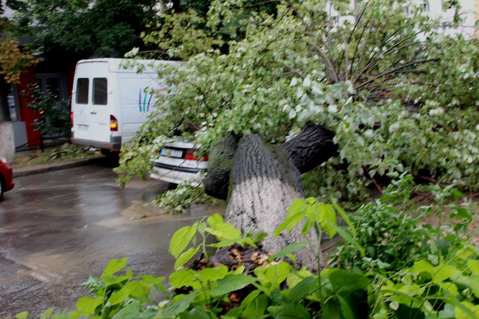 copac cazut peste masina